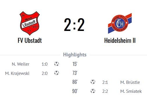 Remis gegen Tabellenführer In einem spannenden Spiel trennte sich unser Team mit einem verdienten 2:2 Unentschieden vom Tabellenführer aus Heidelsheim. Von Beginn an entwickelte sich ein lebendiges Spiel, in dem beide Teams aktiv den Weg nach vorne suchten. Die spielstarken Gäste kamen immer wieder bis zum 16er, blieben dort aber meist an unserer starken Abwehr hängen und hatten kaum echte Torchancen. Unsere Jungs hatten auch einige schöne Spielzüge zu verzeichnen, von denen einer eiskalt...