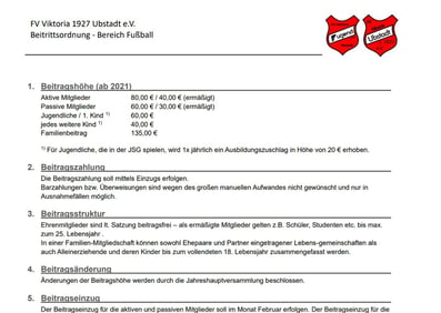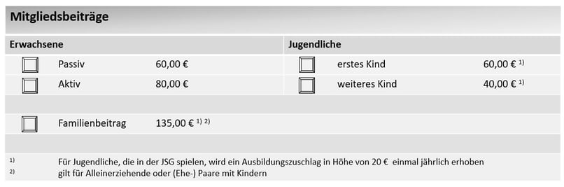 Für Jugendliche, die in der JSG spielen, wird 1x jährlich ein Ausbildungszuschlag in Höhe von 20 € erhoben.